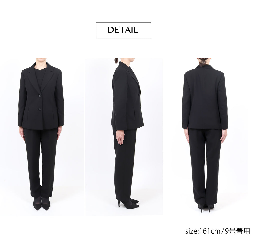 ブラックフォーマル 喪服 礼服 オールシーズン対応 レディース パンツスーツ 7号~17号 t002
