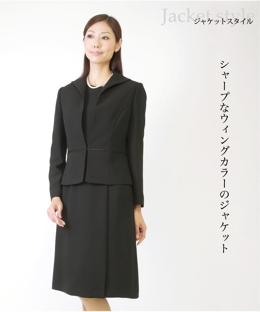 小さいサイズから大きいサイズまで対応した当店で人気No.1のウイングカラーのレディース 喪服です。