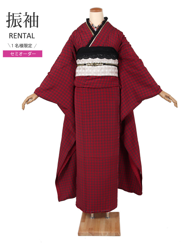 【セミオーダー】 振袖 レンタル フルセット 赤 アンティーク調 レトロ 成人式 二十歳の集い 結婚式 卒業式 適応身長150~168cm 72271